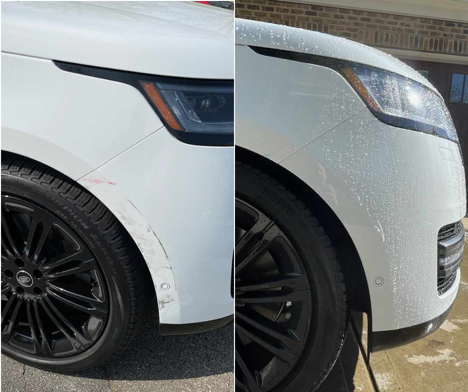 PPF saved this Range Rover from expensive and time consuming repairs after someone changed lanes and rubbed their car. The film took all the damage and the car underneath was as good as day one.